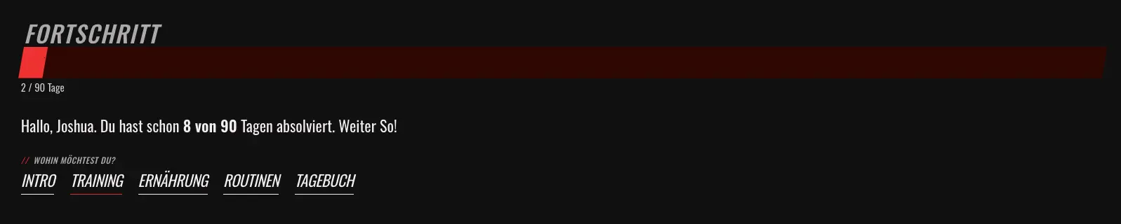 Die Webseite strahlt Kraft aus, ist klar strukturiert und einfach zu bedienen, denn unsere Zielgruppe sind Menschen, die weder viel Fitnesserfahrung, noch viel Fitnessplan-Erfahrung haben.