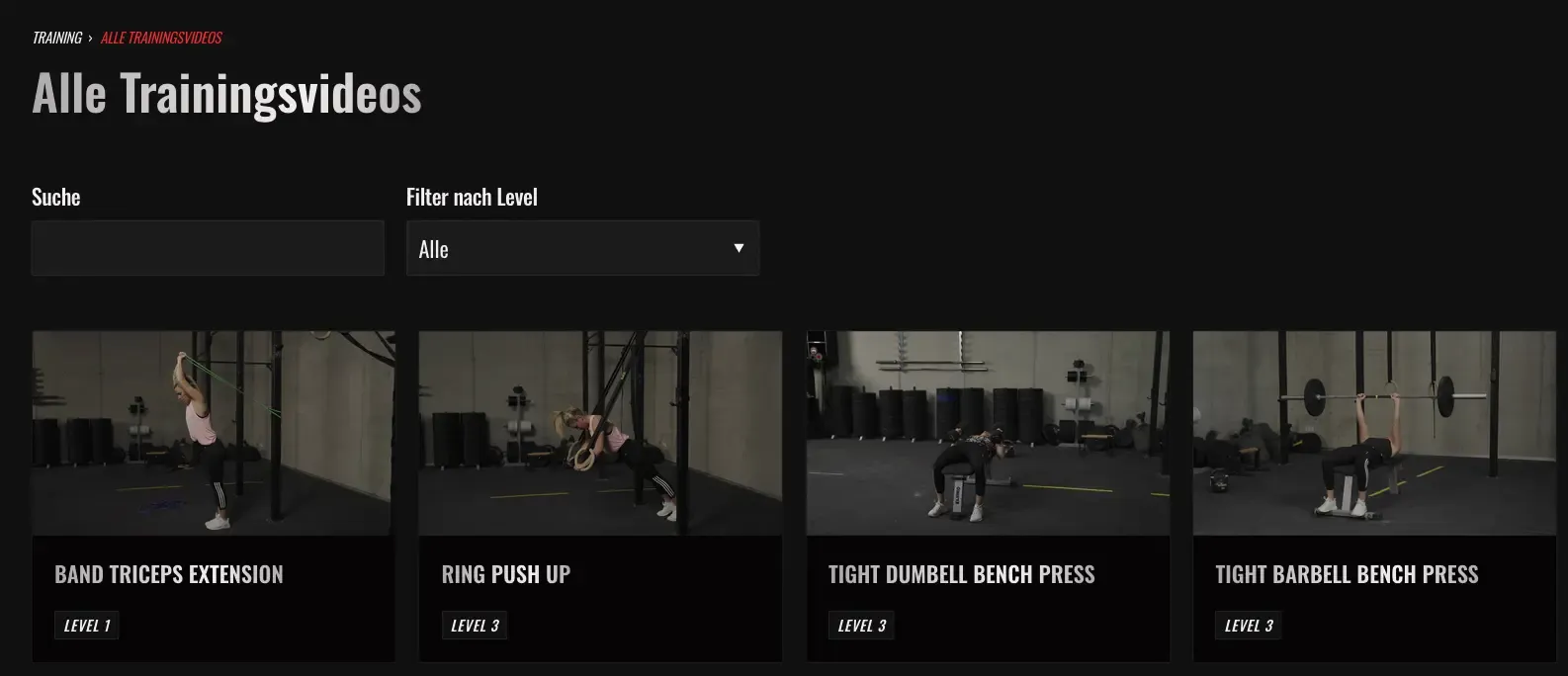 - Es gibt eine Übersicht über alle Übungen mit Filterfunktion.