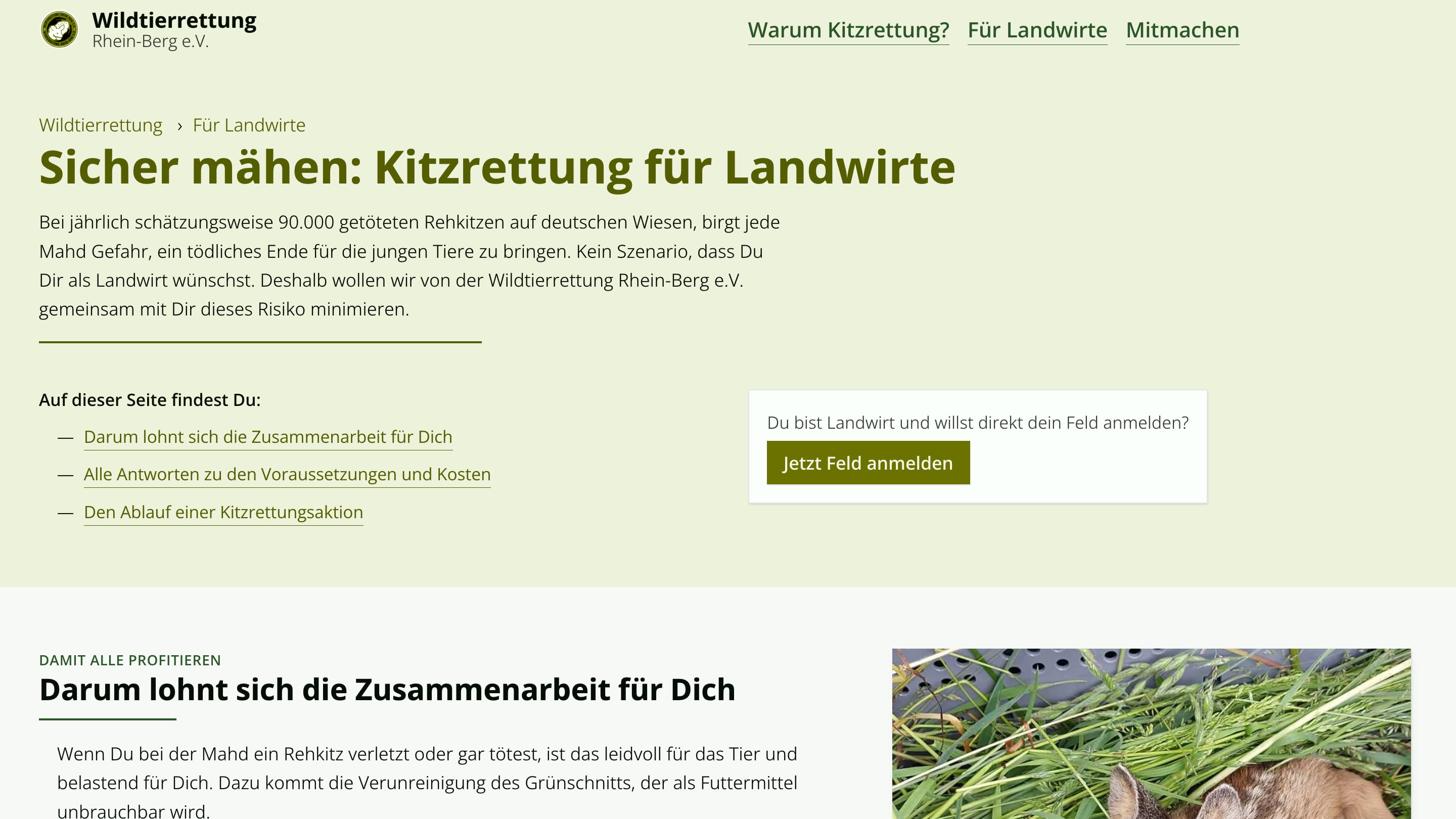 - Landwirt:innen sollen über die Vorteile informiert werden und es soll ihnen einfach gemacht werden, die Wildtierrettung zu beauftragen